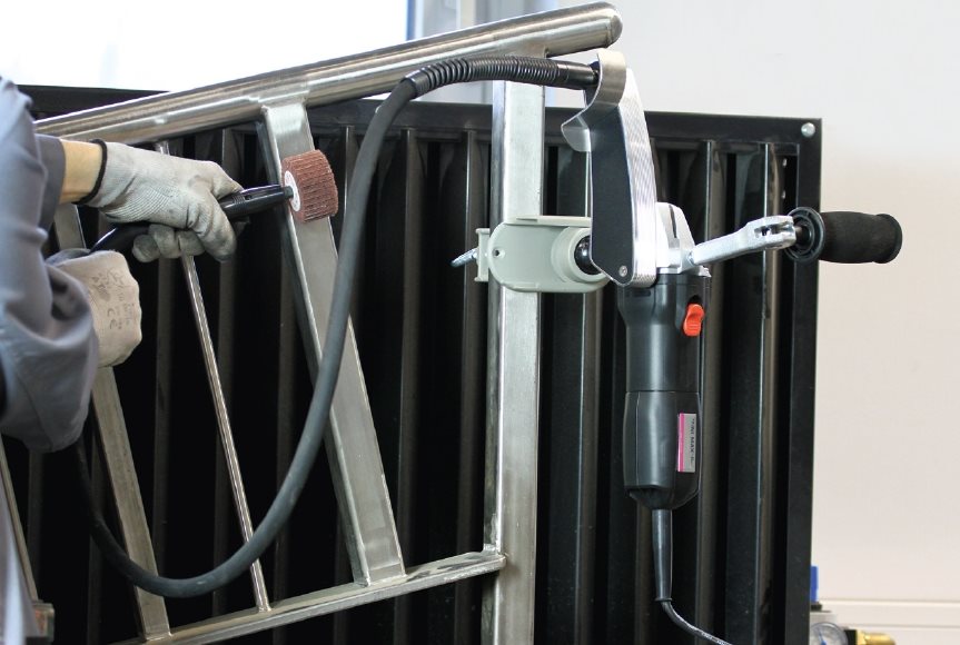 Flexible shaft with steel core for working on narrow and particularly difficult-to-access areas. All grinding tools from the MINI MAX®, MINI FIX and PINLOC systems can also be used with the flexible shaft.