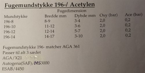 196-6 - Crevice tool, Acetylen - Fugemundstykke / Nozzle Fits AGA A361