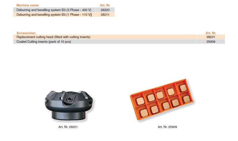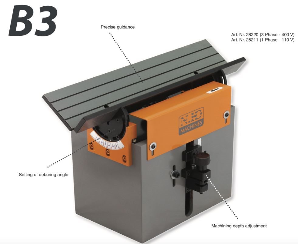Designed for deburring and bevelling of steel parts and workpieces. Processing of different types of materials. Solid and stable