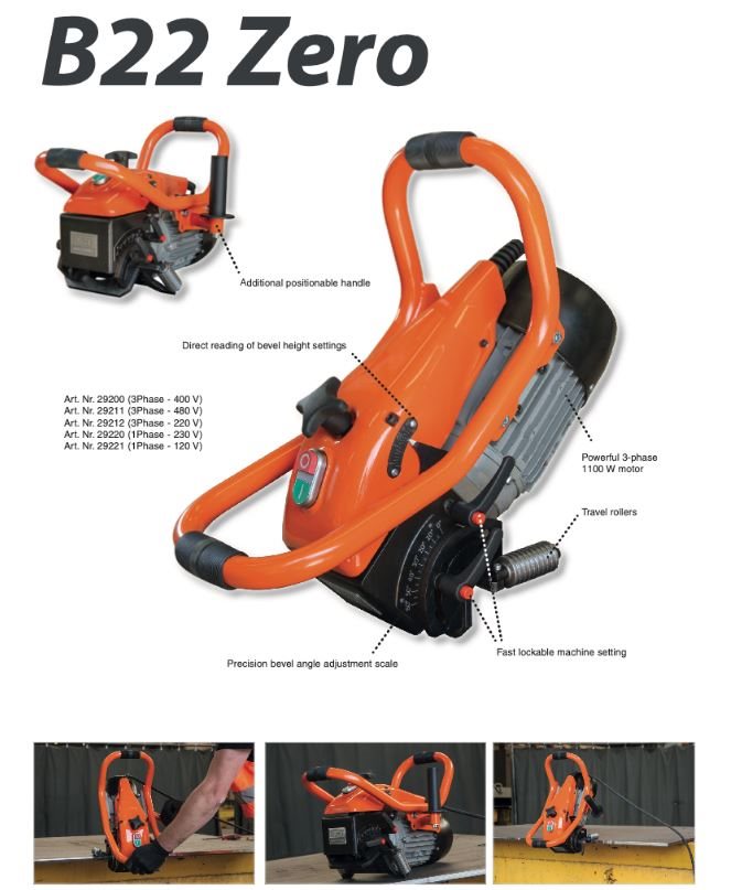 Hand held beveler B22 ZERO (maximum width of bevel 22mm)