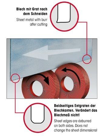 The ideal table-top or floor-standing device for the lightning-fast, double-sided deburring of sheet metal parts of all metals (including stainless steel) in one operation.