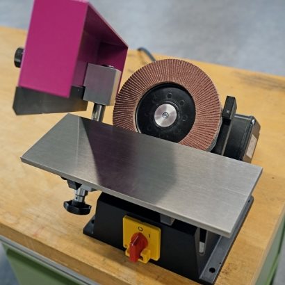 The flap disc with especially hard compression for deburring machines.