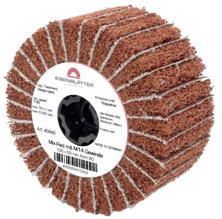 Higher material removal in less time than pure fleece wheels without intermediate layers of grinding flaps.