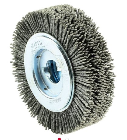 Grain-filled, elastic plastic brush for roughening and deburring metals and creating rustic effects on wood.