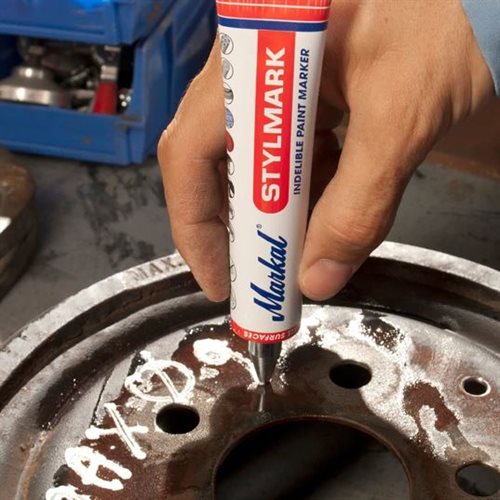 Durable steel ball tip marks with indelible paint on smooth or rough surfaces