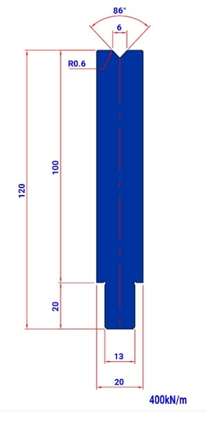DIE T06 86° V=6 R=0,6 H=100 L=200 - 981629 - 3,5 kg - Italy