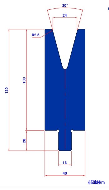 DIE T24 30° V=24 R=2,5 H=100 L=200 - 982481 - 5,9 kg - Italy