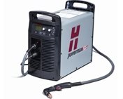 Hypertherm Powermax 105 with hand-held torch and 25 ft cable. Cuts up to 1-1/4 inch thick steel. Includes extra nozzle sizes and parts for machine cutting and ohmic sensing.
