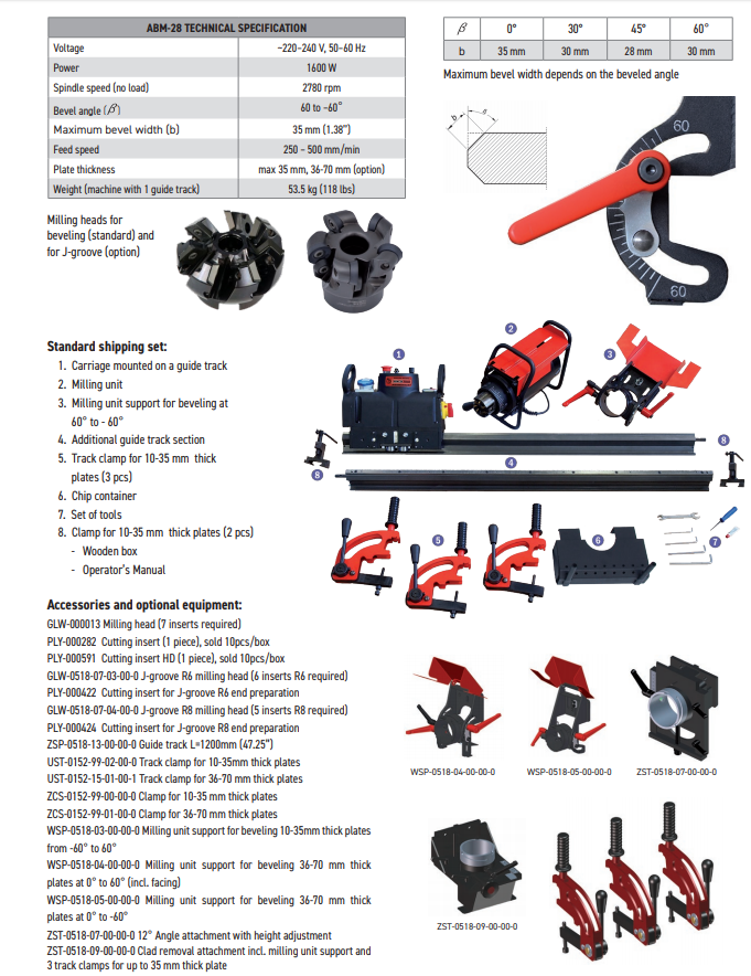 • Max. bevel width (depending on the beveled angle) from 28 up to 35 mm
