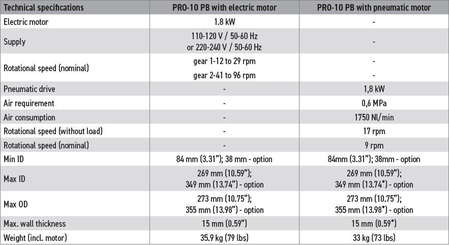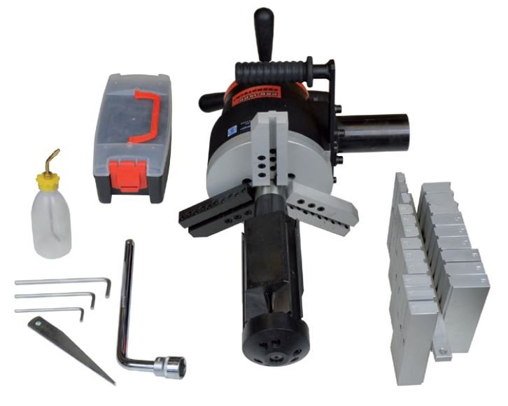 PRO-10 PB is a heavy duty pipe Beveller designed for portable use in pipe machining operations. Self-centering expandable mandrels provide quick and proper alignment to a pipe or a tube prior to machining operations.