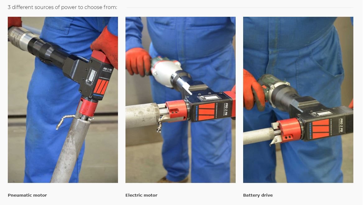 PRO 2 PB is a compact, handy pipe beveller that mills pipes made of carbon and stainless steel, aluminum alloys, and