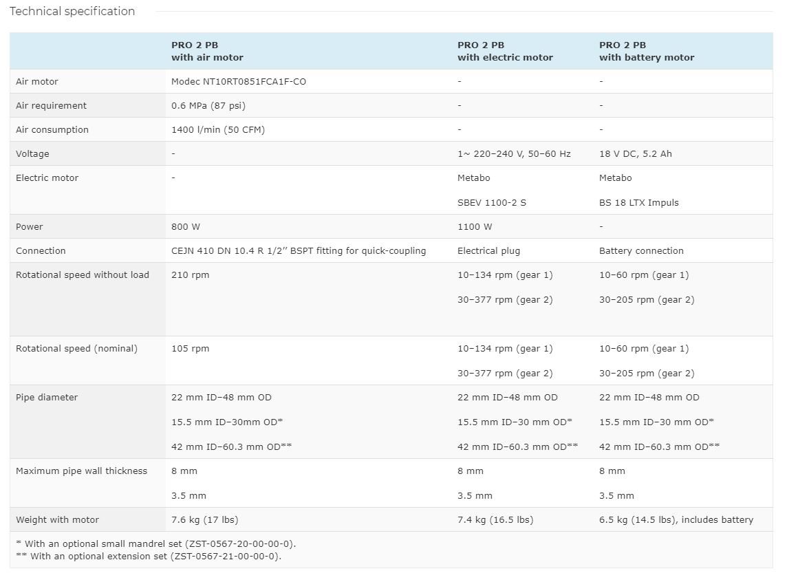 PRO 2 PB is able to mill also larger pipes from ID 42 mm (1.65”) up to OD 60.3 mm (2.37”) by means of an optional extension