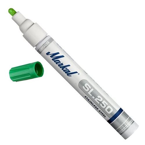SL.250 is a xylene-free, low-odor, and fast-drying liquid paint marker that meets the European nuclear requirements. The low sulfur and low chloride content allows for safe marking on stainless steel. Available in Europe only.